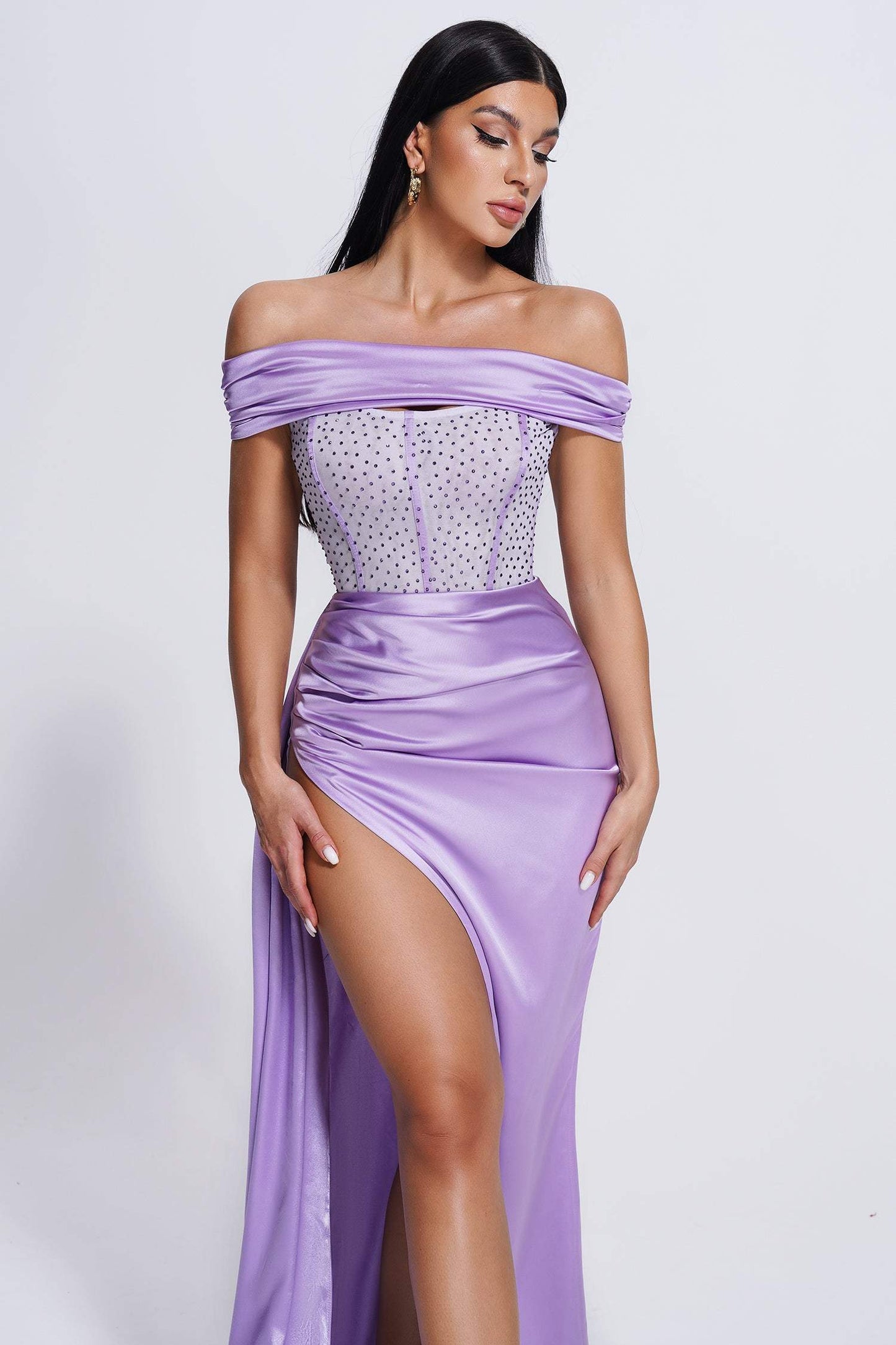 Colia Diamomate Mesh Corset Satin Maxi Dress - Purple 💜